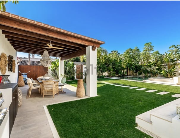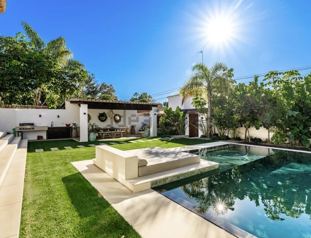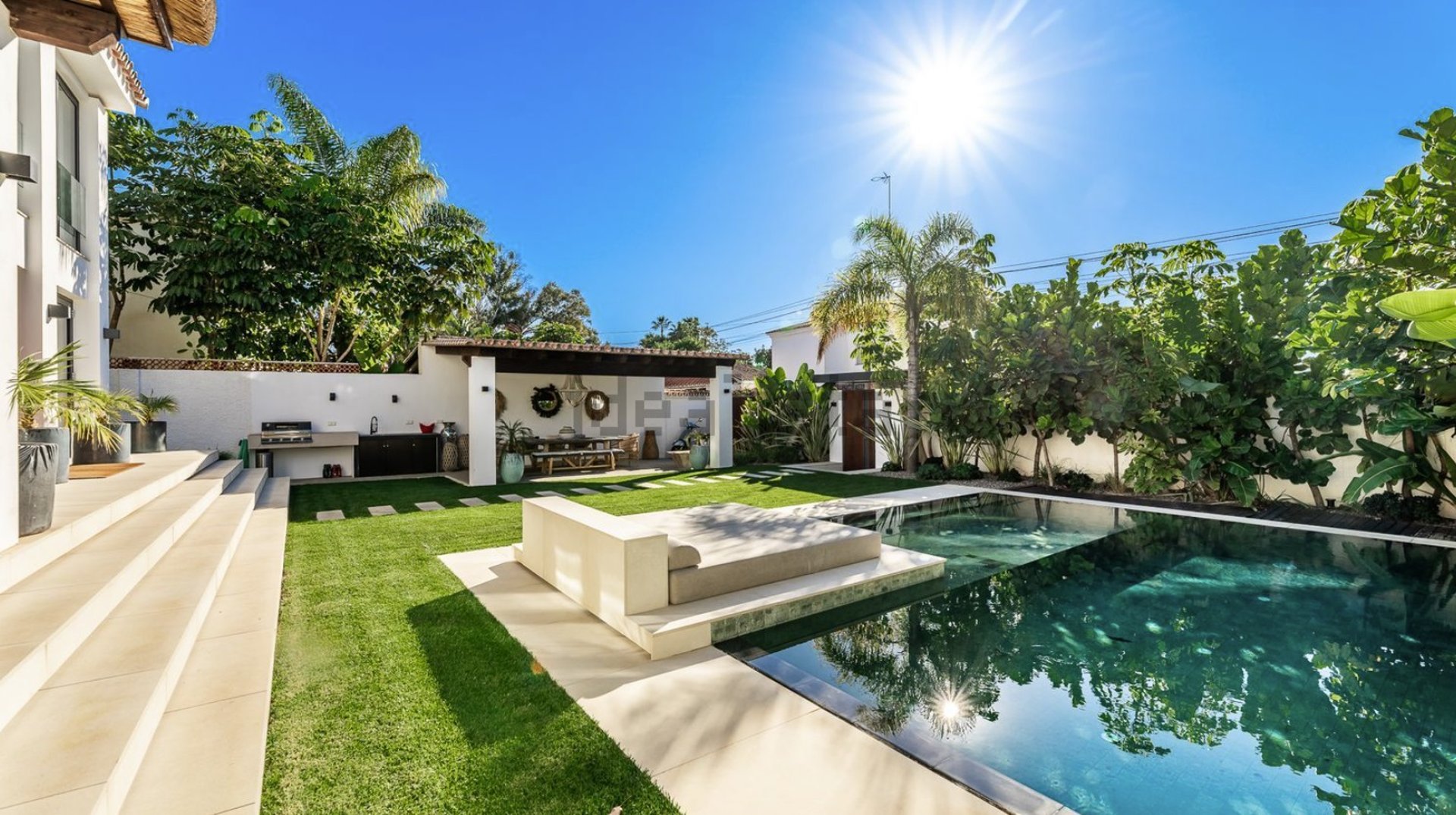Discover the perfect blend of luxury and comfort in this beautiful 3-bedroom villa, ideally located just 50 meters from the beach in the heart of Marbella. Nestled in a quiet and safe neighborhood, this home is perfect for families, couples, and those seeking a serene retreat.